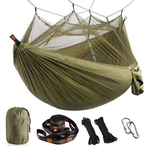 Гамак с москитной сеткой изготовлен из высококачественной дышащей ткани, которая выдерживает вес до 200 кг, и имеет встроенную москитную сетку, которая защитит вас от укусов во время сна.