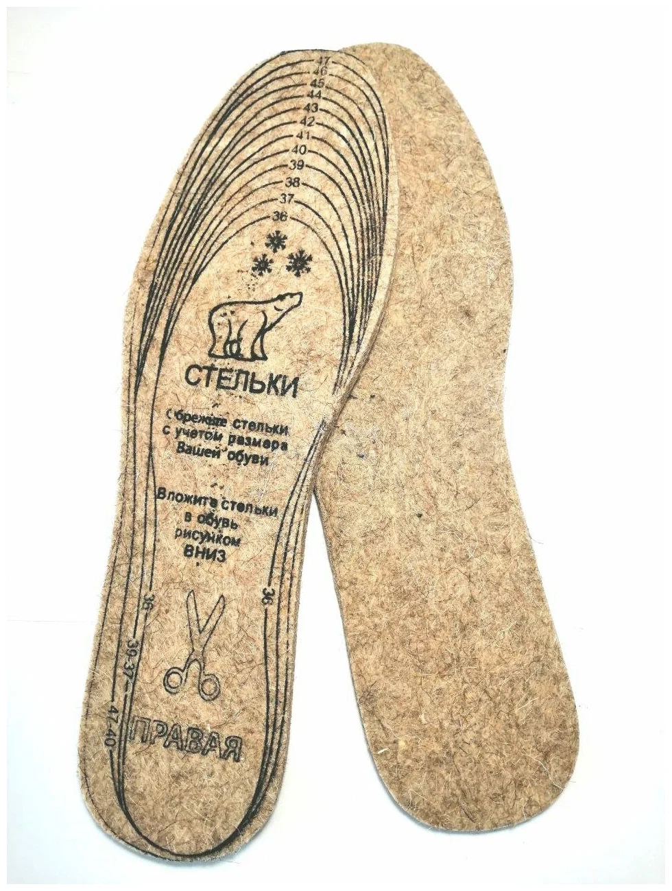 Преимущество наших стелек из войлока заключается в том, что они имеют универсальный размер. Поэтому, купив стельки, вы можете не переживать, что они не пойдут по размеру.